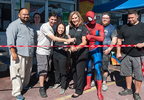 To mark the occasion, they had an official ribbon and pizza dough cutting. Santa Clara Mayor, Lisa Gillmor helped mark the occasion by representing the City of Santa Clara and presented a city-proclamation. Andrae Macapinlac from Senator Bob Wieckowski’s office presented a certificate of commendation signed by the Senator and Assemblymember Evan Low and to top that off, a local fan of the restaurant, fitness trainer and Cosplayer, SpideyFit came to the event. Special anniversary pricing was in effect all day at both locations – $2 for a slice of pizza, $10 for a small and $15 for a large pizza and a limited edition $20 t-shirt with all funds benefiting Guadalupe River Park Conservancy.