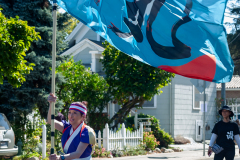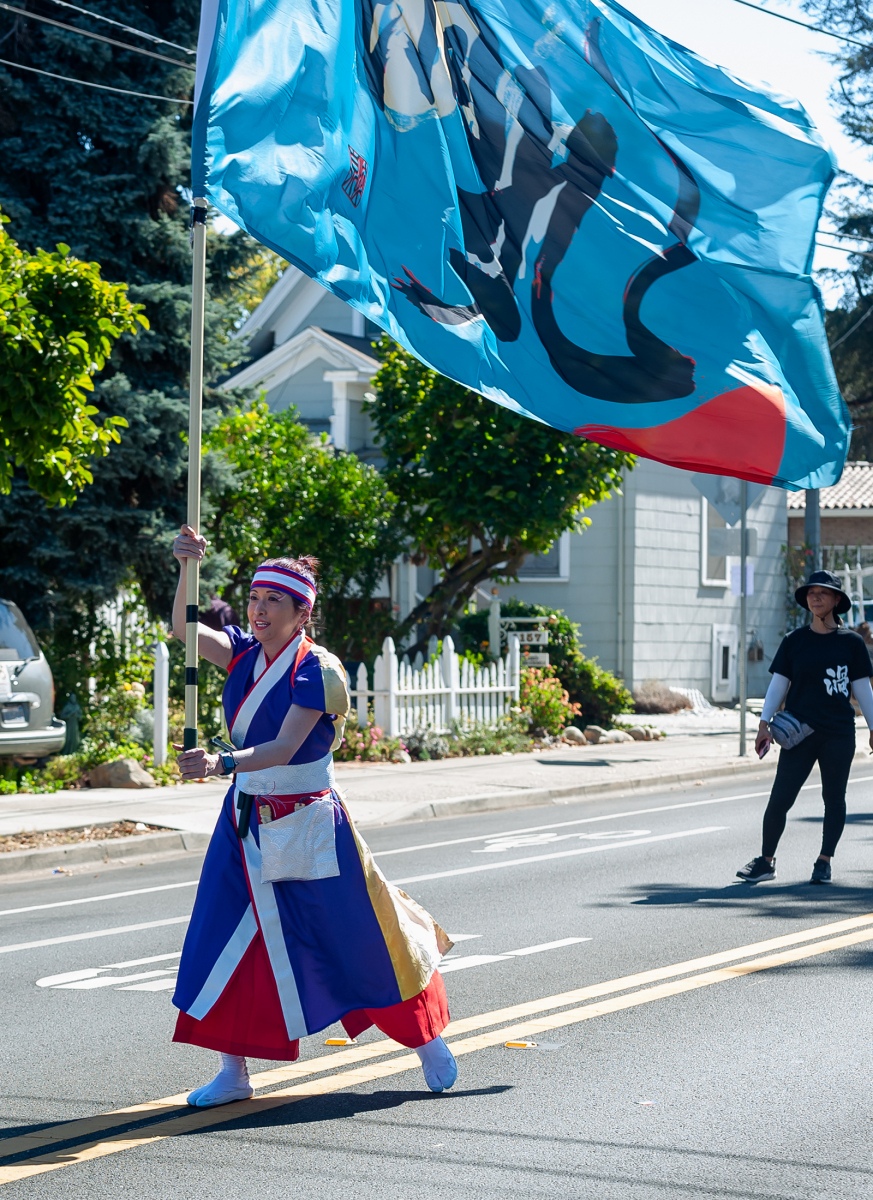Honored guest Chris Carver was joined by a large contingent of Santa Clara Artistic Swimming Club swimmers. Carver rode in a car in front of the group, with the swimmers performing behind her.