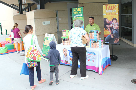 At the front of Central Park Library on Aug. 10, library attendees learned about First 5 California (www.first5california.com), also referred to as the California Children and Families Commission. Families attending the “First 5 & Pam Donkin Musical Storytime” in the Redwood Room received free “new parent” kits in either English, Spanish or Mandarin. These kits included Roger Priddy’s book “Happy Baby: Puppy And Friends,” Gloria Mayer and Ann Kuklierus’s book “What to Do When Your Child Gets Sick” and a guide about paid family leave.