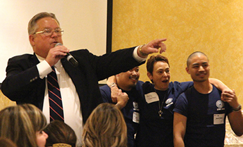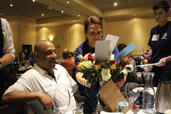 In addition to speakers, a raffle and live auction filled with unique offerings, like a 10-person private dinner catered by two of Villarreal’s former culinary students at Wilcox High School, was held. Rizi Manzon (’98) and Jarrell Fedalizo (’06), who made a s’more-inspired dessert for the occasion, stood in front of the room as the auction continued to creep up, resulting in a $560 donation (well over the $300 starting bid) to Justin’s House.