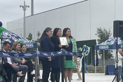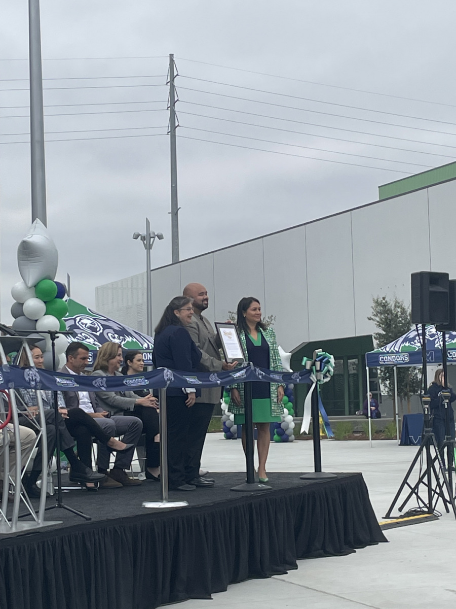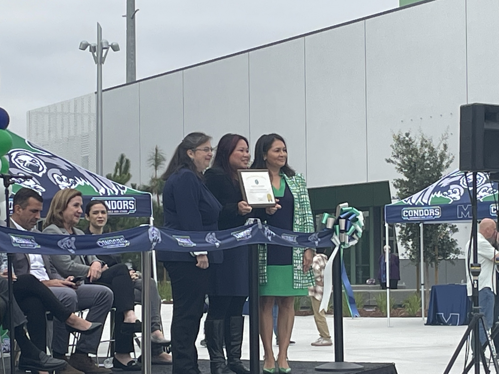 While the ribbon was cut on Oct. 15, the school is already open with a freshman class. Students had the opportunity to take part in the celebration. ASB President Lucious Depew introduced Principal Dr. Vivian Rhone-Lay during the ceremony, while ASB Vice President Jiya Patel introduced the guest of honor.