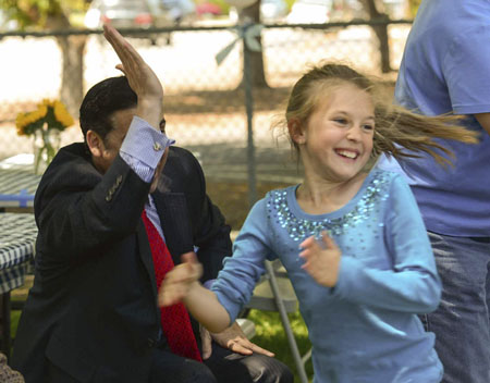 After making a presentation to the students and parents of Millikin Elementary School during the National Blue Ribbon School Family Picnic, Santa Clara County Superintendent of Schools, Xavier De La Torre, got and gave high-fives to Millikin students, making at least one student smile with excitement.
