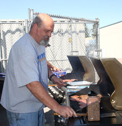 Randy Rose, President of the Santa Clara High School Athletics Boosters, helps cook over 200 burgers and 100 hotdogs on Saturday, August 20 football players and referees. Both Varsity and Junior Varsity teams scrimmaged with each other, preparing for their upcoming football season.