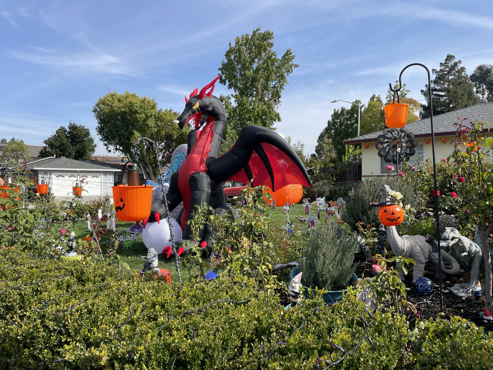 “I like doing the child safe stuff, like not the spooky stuff,” said Roger. “This year is the first year I put out the inflatables. The dragon is a recurring thing, and it only comes out one day a year so that’s a first.”