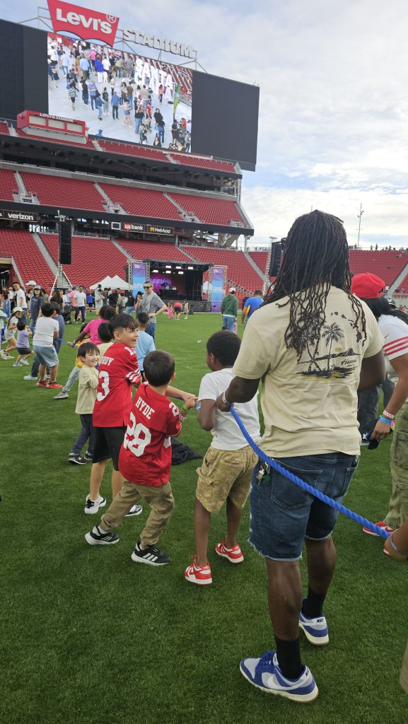 Santa Clarans spent the day (noon to 8 p.m.) as VIPs inside the stadium—which opened in 2014—watching and playing games on the same field where Super Bowl L and LX were played. They toured the 49ers museum, enjoyed live entertainment and danced to DJed music.