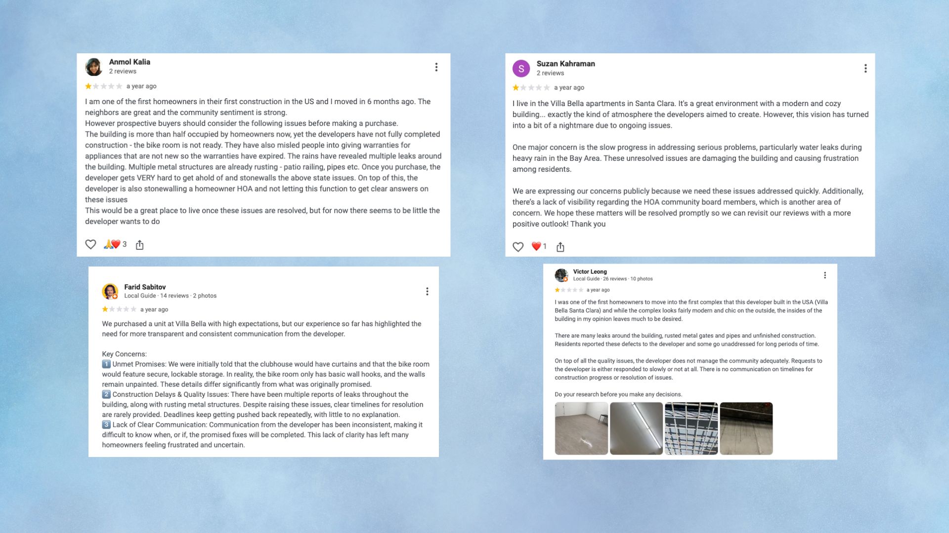 Suzan Kahraman also purchased a unit in June 2024. They complained about “water leaks during heavy rain.”