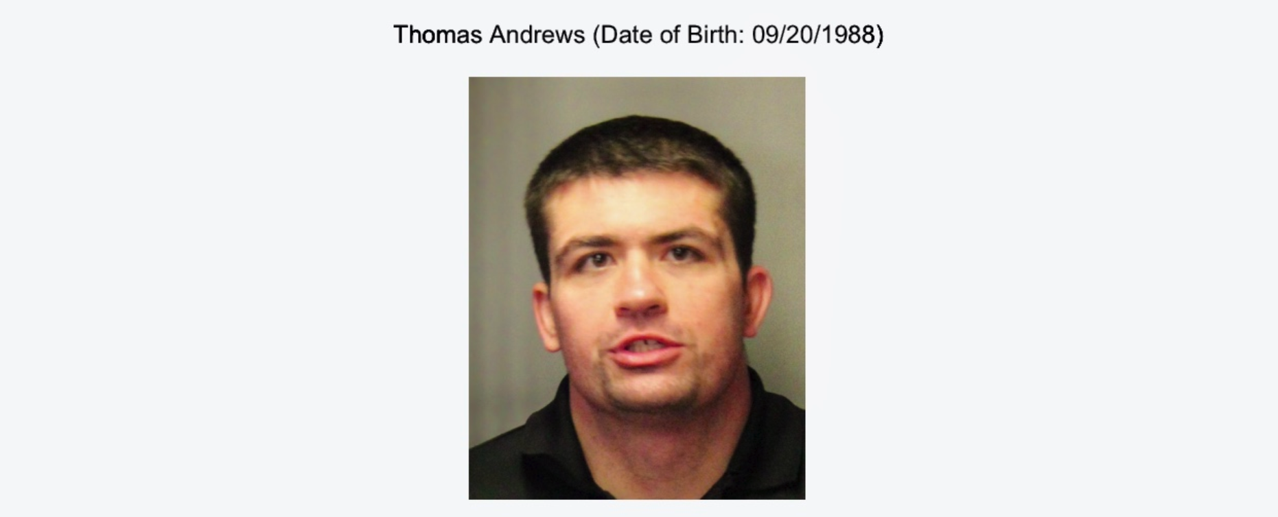 Thomas Andrews was booked into the Santa Clara County Jail for 422 PC – Criminal Threats, 2800.2(a) VC – Evading Police, 23152(a) VC – Driving Under the Influence, and several counts of weapons violations.